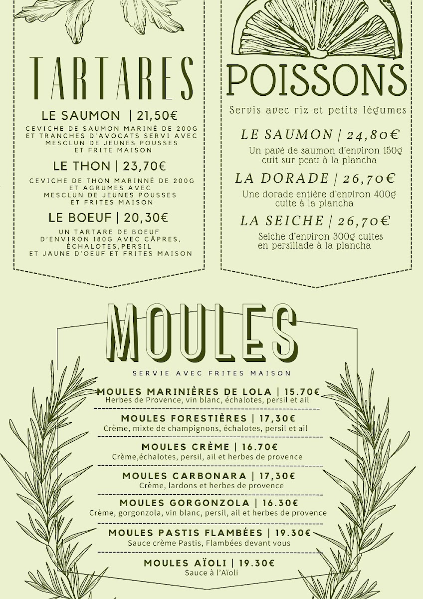 Welcome to Chez Lola, a hidden gem nestled at 3 Pl. de la Republique in Le Grau-du-Roi, France. This charming restaurant combines an industrial ambiance with warmth, making it a perfect spot for a memorable meal. The menu features a delightful array of options, including vegetarian burgers, fresh mussels, and the much-acclaimed aubergine lasagna, which have garnered rave reviews for their flavor and presentation. Patrons rave about the welcoming staff, who ensure that every dining experience is smooth and enjoyable. The spacious layout and friendly atmosphere add to the overall experience, allowing guests to savor their meals without feeling rushed. Whether you’re after a casual lunch or a cozy dinner, Chez Lola promises a culinary journey that captivates the senses. With excellent service and standout dishes, this restaurant truly shines as a must-visit destination for food lovers.